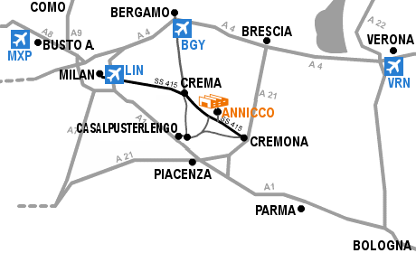 We are located in Annicco, in the northern part of Italy, 70 Km far from Milan 20 Km far from Cremona (the beautiful town of violins) and 25 Km far from Crema.